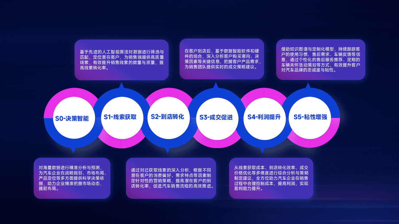 通过拓宽潜在客户来源、、、优化线索分配并提高到店转化率,,,,以增强销售效率。。。。同时,,,利用线索数据不断优化分析模型,,,有效提升转化率,,,扩大营销影响力。。